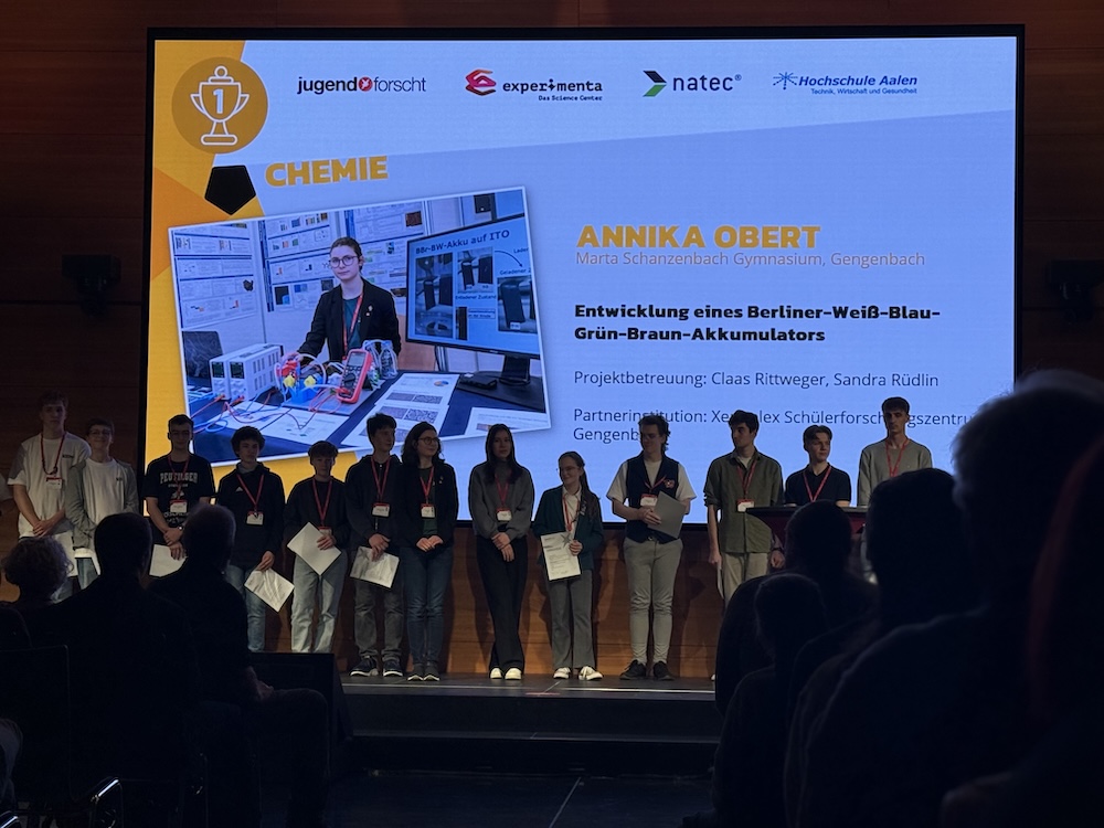 Mit einer besonders erfreulichen Nachricht verabschiedete sich unsere Schule in die Osterferien: Annika Obert wurde beim Landeswettbewerb mit dem 1. Platz im Fachbereich Chemie ausgezeichnet und wird Baden-Württemberg erneut beim Bundeswettbewerb vertreten.