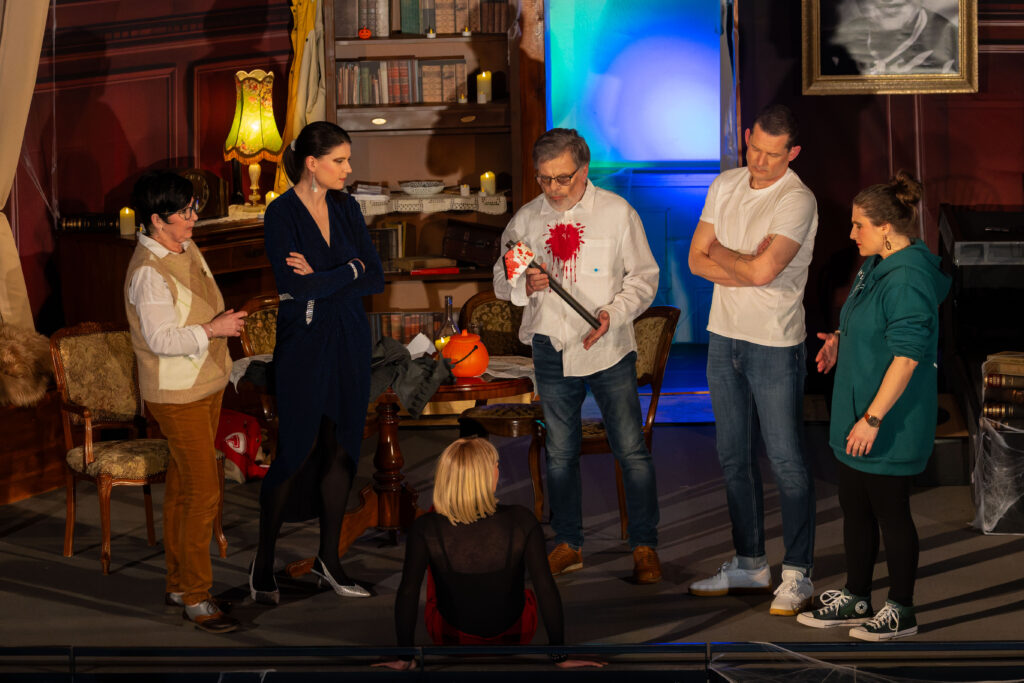 Mit großer Spielfreude, Ausdrucksstärke und präzisem Timing glänzte das sechsköpfige Ensemble an allen drei Abenden in Folge. Die lebendigen Dialoge, pointierten Schlagabtausche und gegenseitigen Verdächtigungen sorgten für Spannung – wurden jedoch immer wieder von humorvollen Momenten aufgelockert. Sätze wie „Er hat lebend schon nicht gut ausgesehen, sterben war keine Verbesserung“ sorgten für einige Lacher im Publikum, das jede Gelegenheit zu nutzen schien, um der angestaunten Anspannung Luft zu machen.