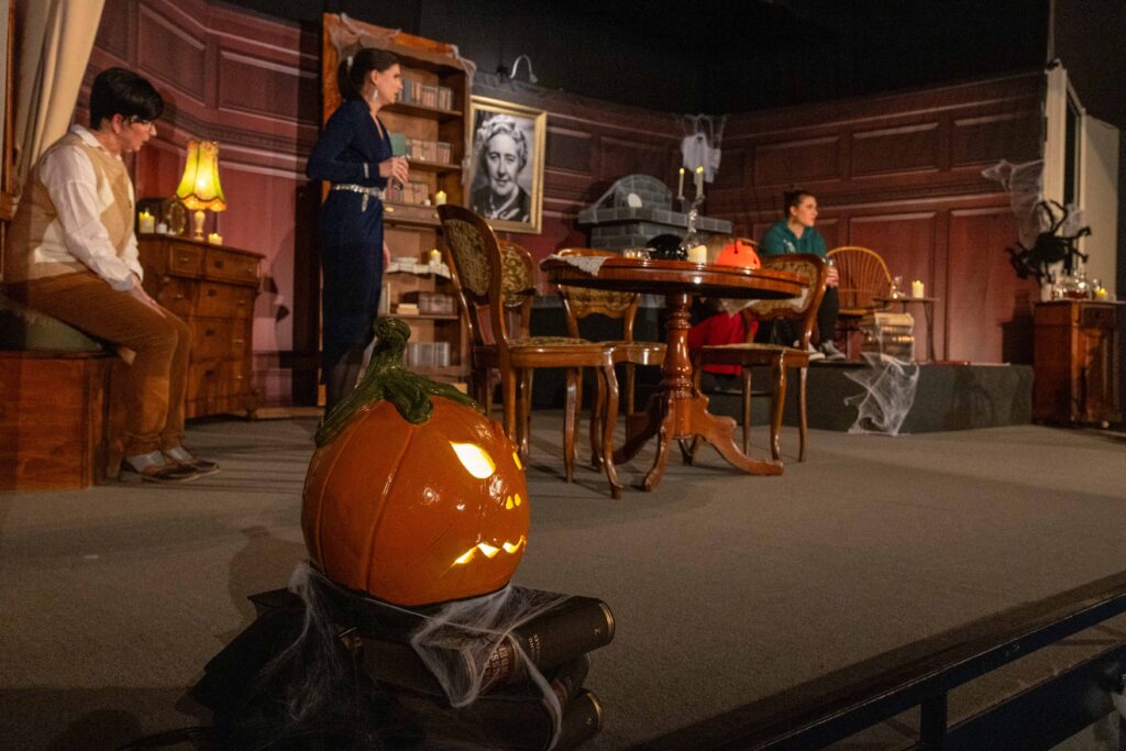 Schon das aufwändige Bühnenbild zeigte, mit welchem Anspruch die Produktion umgesetzt wurde: Liebevoll gestaltete Halloween-Dekoration schon im Foyer, von Spinnweben bedeckte Bücherstapel auf der Bühne, Spinnen an der Wand und sogar ein sich bewegendes Bücherregal, das den dahinterliegenden Geheimgang offenbarte. Unterstützt wurde die eindrucksvolle Kulisse durch den gezielten Einsatz der Technik – mit lautem Donnergrollen, grellen Blitzen und spektakulären Effekten wie einem scheinbar explodierenden Teller auf offener Bühne.