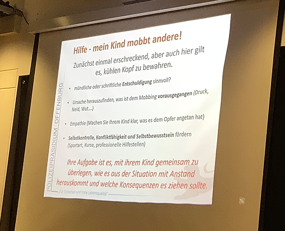 Themen des Elternabends waren zudem sichere Passwörter, lizenzfreie Bilder im Netz, Rechte am eigenen Foto, TIKTOK-Chatverläufe mit Fremden, die aus dem Ruder laufen etc.